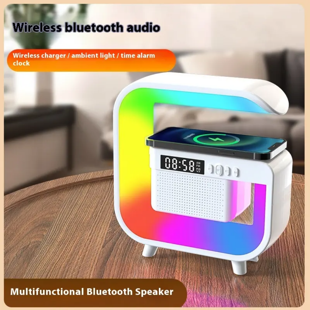 Product details of G3 Mini Smart Light Bluetooth Speaker Colorful Lights Clock Wireless Charging Multifunctional Bluetooth Speaker Colorful Atmosphere Alarm Clock Wireless Charging Speaker Bluetooth Speaker 15W Wirelss Charging Support Control Method: Push Button Type Lamp Type: Banker Shade Shape: Pagoda Theme: Anime, Fantasy, Movie, Space, Holiday Base Material: Plastic Connectivity Technology: Wireless Lighting Method: Adjustable Finish Type: Unfinished Room Type: Bedroom Material: Plastic Patterned: Solid color Recommended Use: Reading Included Components: Cord Turn On/Off: Button Bulb Base: Flange Power Mode: Battery Powered/USB Dual Use Operating Voltage: ≤36V wireless property: With wireless charging function, wireless Battery Properties: Rechargeable Battery Rechargeable Battery: Lithium Battery-Polymer ⚫contains electronic components/motherboard: Contains electronic components or motherboard Type Of Light Source: LED Lights Specific Uses For Product: For Christmas Battery Capacity (mAh): 300